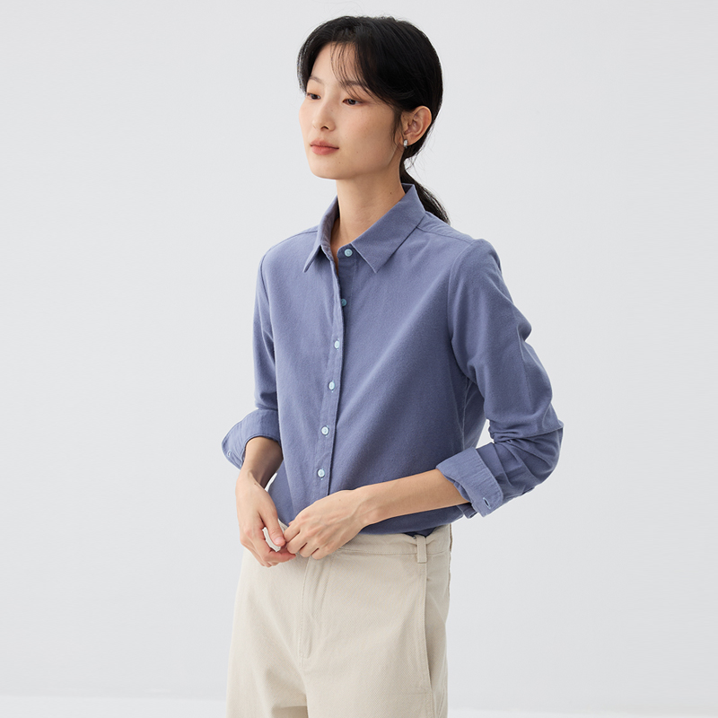 叠穿秋冬新款 厚款 纯色打底全棉衬衣 女长袖 宿·色磨毛休闲衬衫
