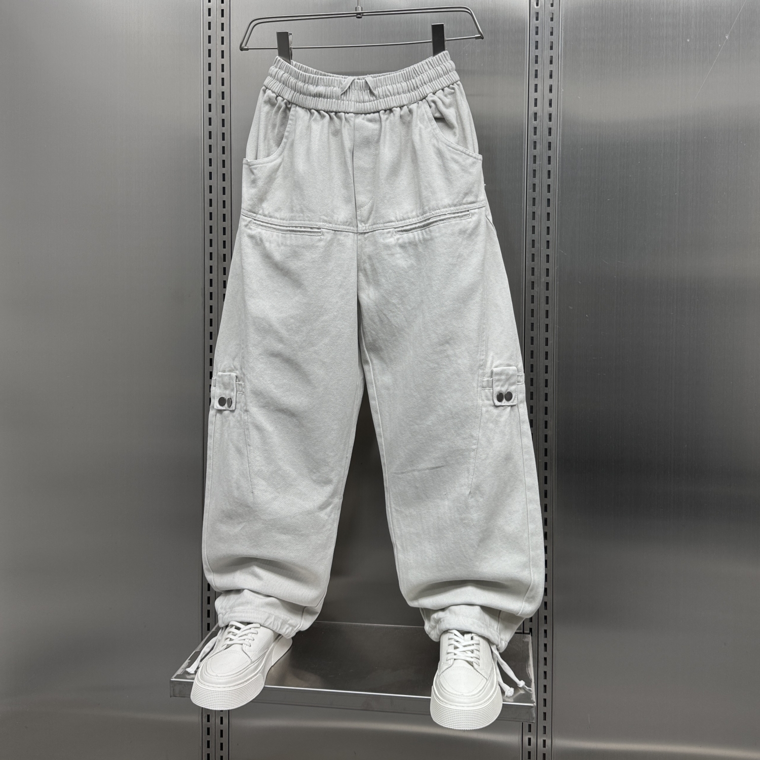 休闲显瘦卫裤 白灰色运动裤 高腰直筒宽松阔腿美式 春秋季 女2025新款