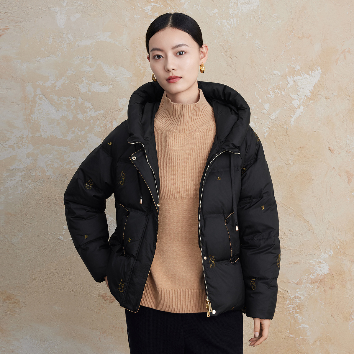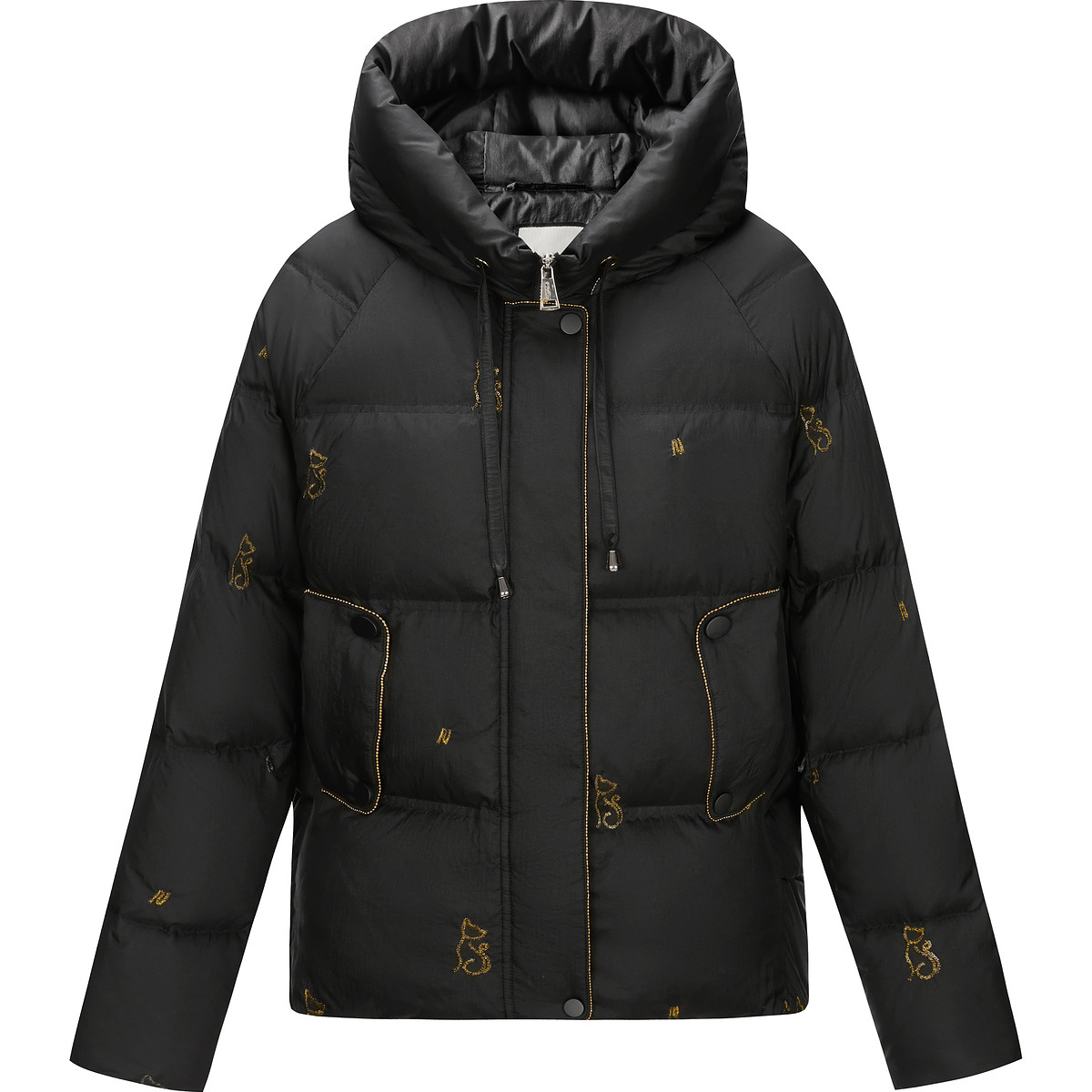 雪中飞2025冬新款 龟背连帽羽绒服柔软舒适休闲保暖 女士泡芙小短款