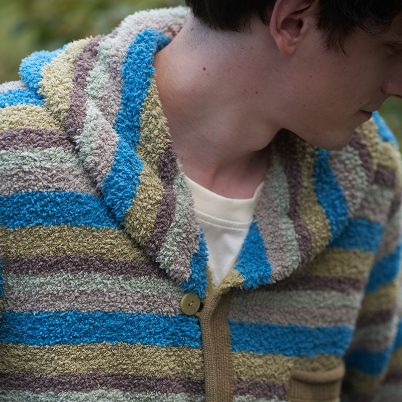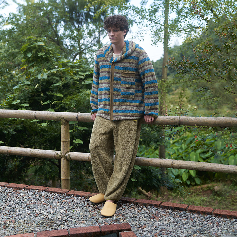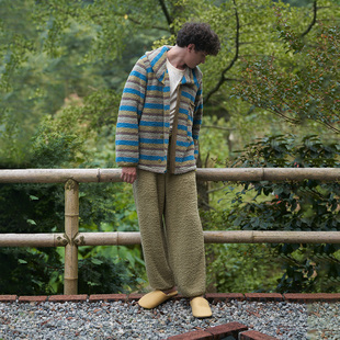 睡衣男家居服套装 条纹半边绒羽毛绒长袖 新款 朵朵可可秋冬季