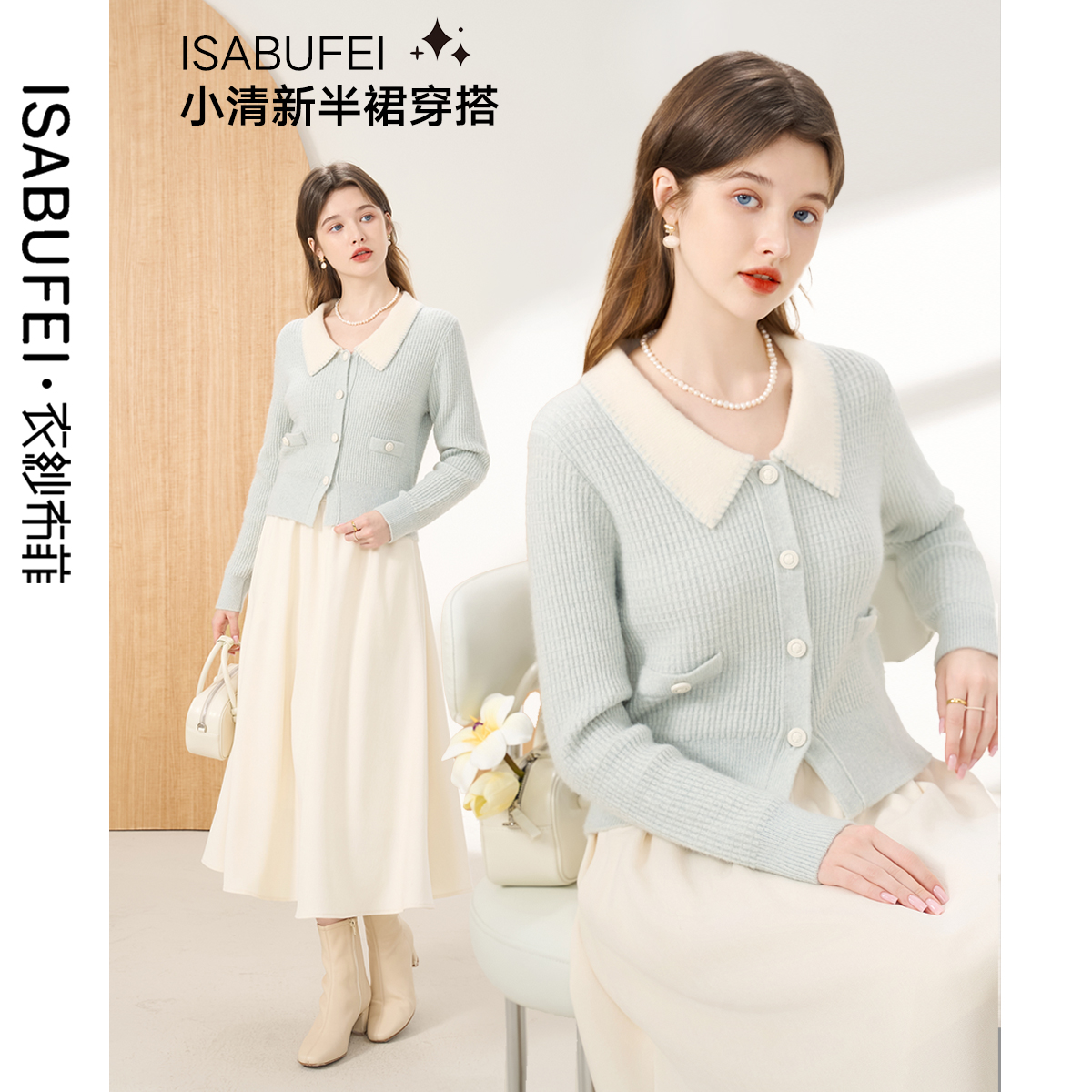 女2025年秋季 V领藏青色女开衫 新款 上衣长袖 羊绒羊毛衫 羊毛针织衫
