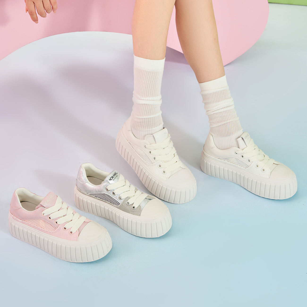 百搭休闲鞋 奥康 时尚 春秋拼接网面透气增高厚底小个子鞋 女鞋