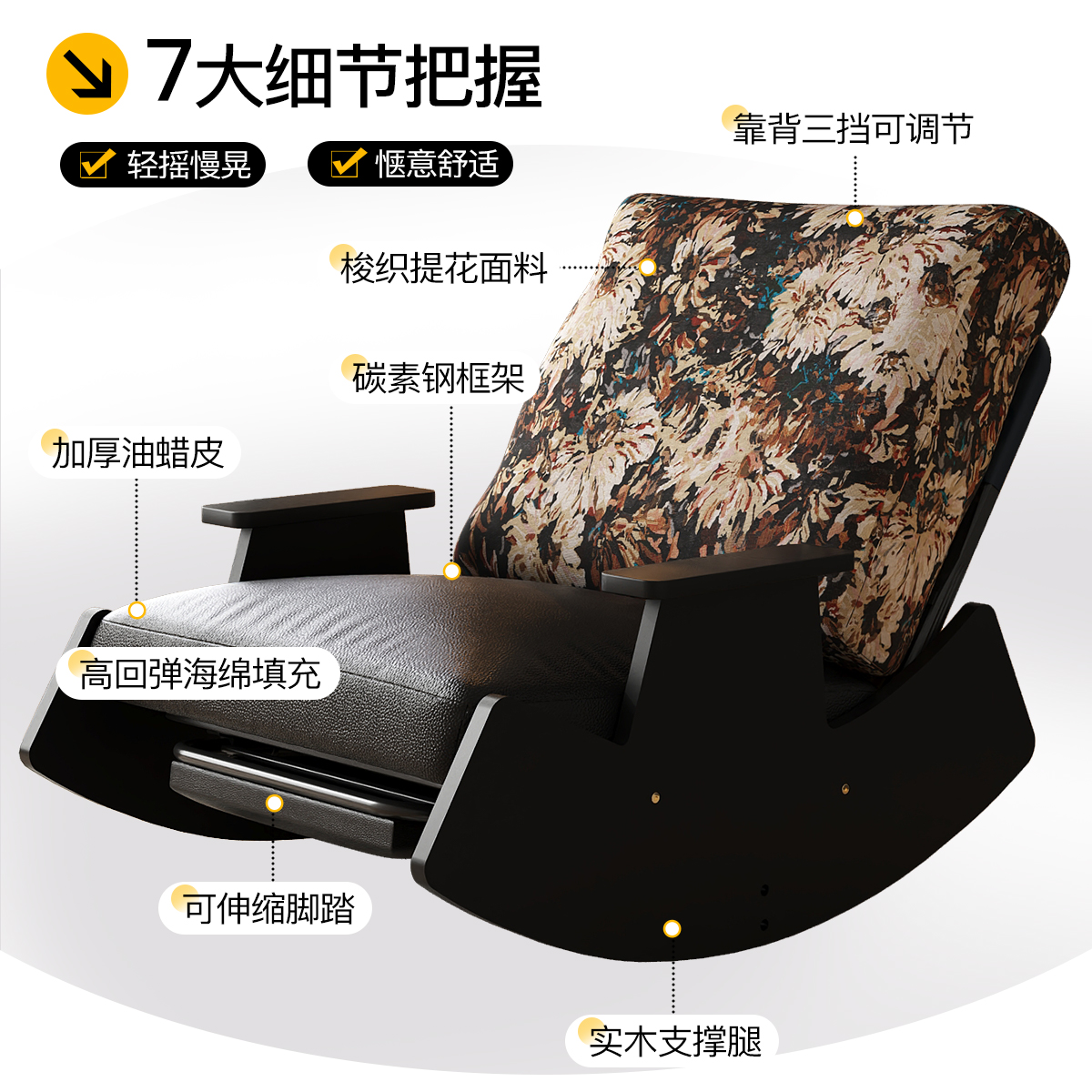 三梦实木摇摇椅复古躺椅阳台单人沙发椅家用客厅休闲椅可睡可躺椅