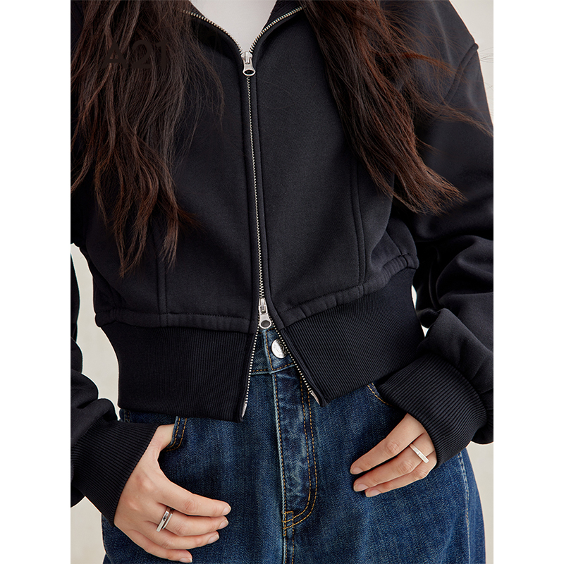 黑色短款 设计感宽松插肩袖 开衫 新款 外套 加绒卫衣2024冬季 A21女装
