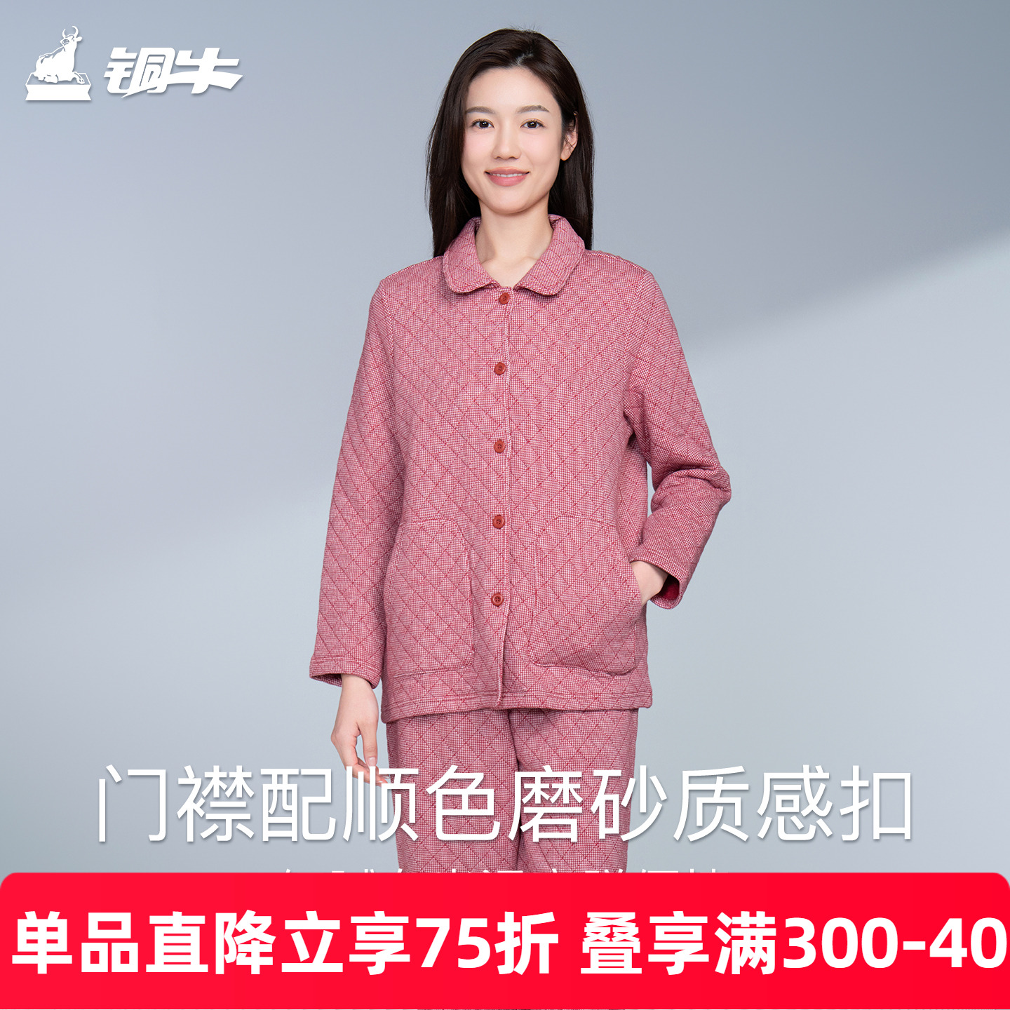 保暖休闲VJ127 长袖 铜牛原液千鸟格暖棉翻领家居女套 2024秋冬新款
