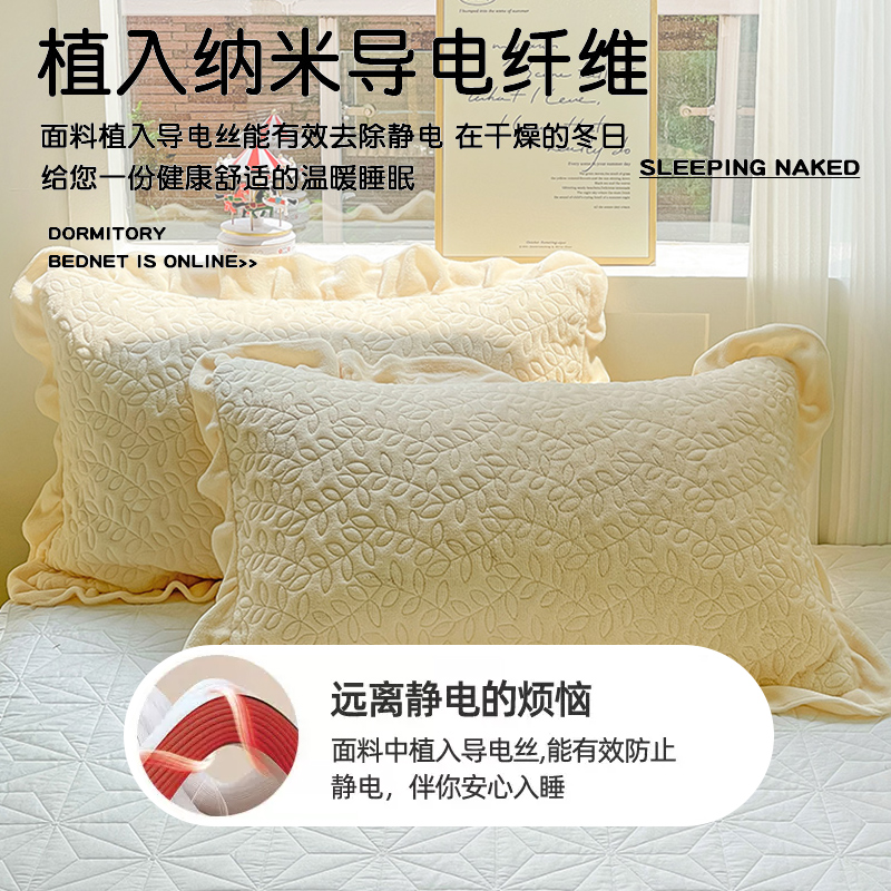 木林森牛奶绒枕套一对装 珊瑚绒枕巾单人枕头套48cmx74枕芯套 秋季