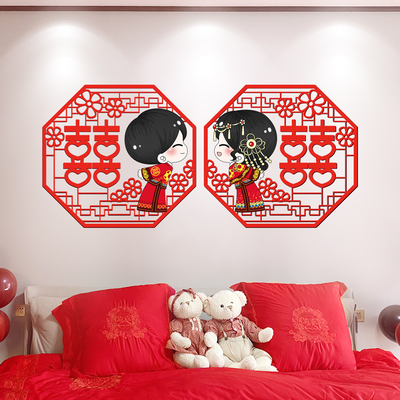 新婚卧室装 饰贴画结婚床头喜字衣柜窗花玻璃贴纸自粘喜庆门贴墙贴