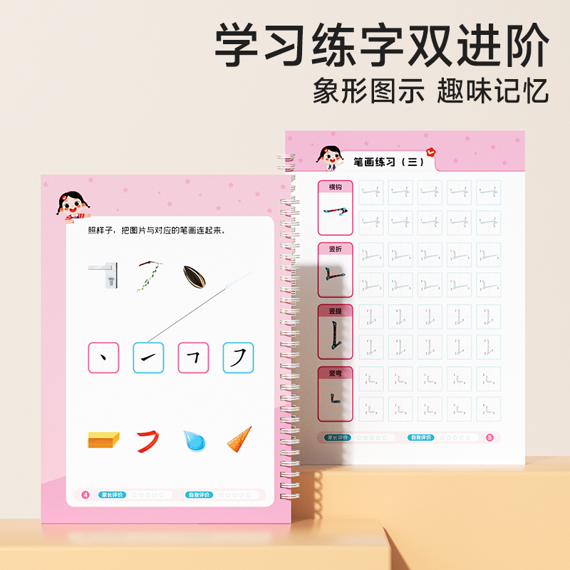 幼儿园控笔训练儿童练习入门描红本专用中班大班每日一练学前班初学者写字学字绘画宝宝启蒙 三点定位凹槽练字帖全三册 时光学