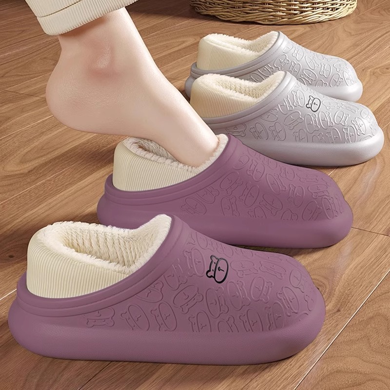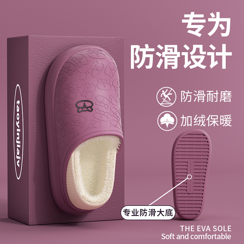 室内家居厚底毛绒情侣棉鞋 踩屎感棉拖鞋 女士秋冬保暖包跟2025新款