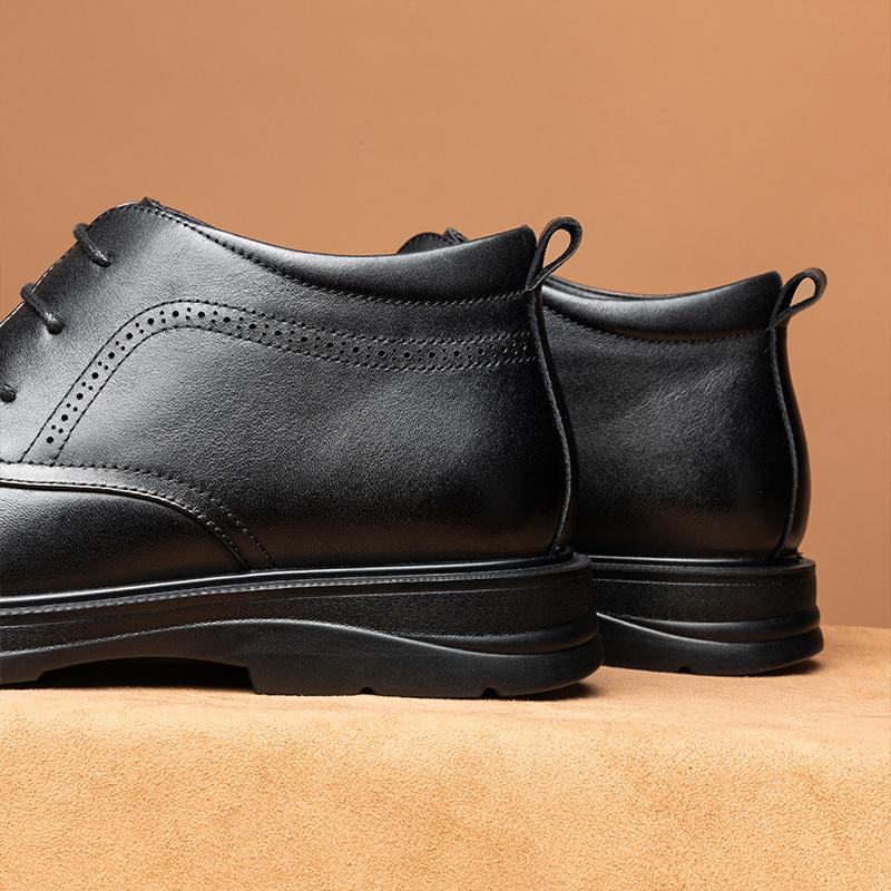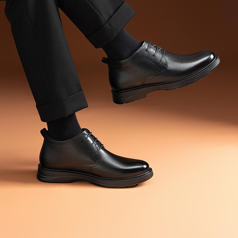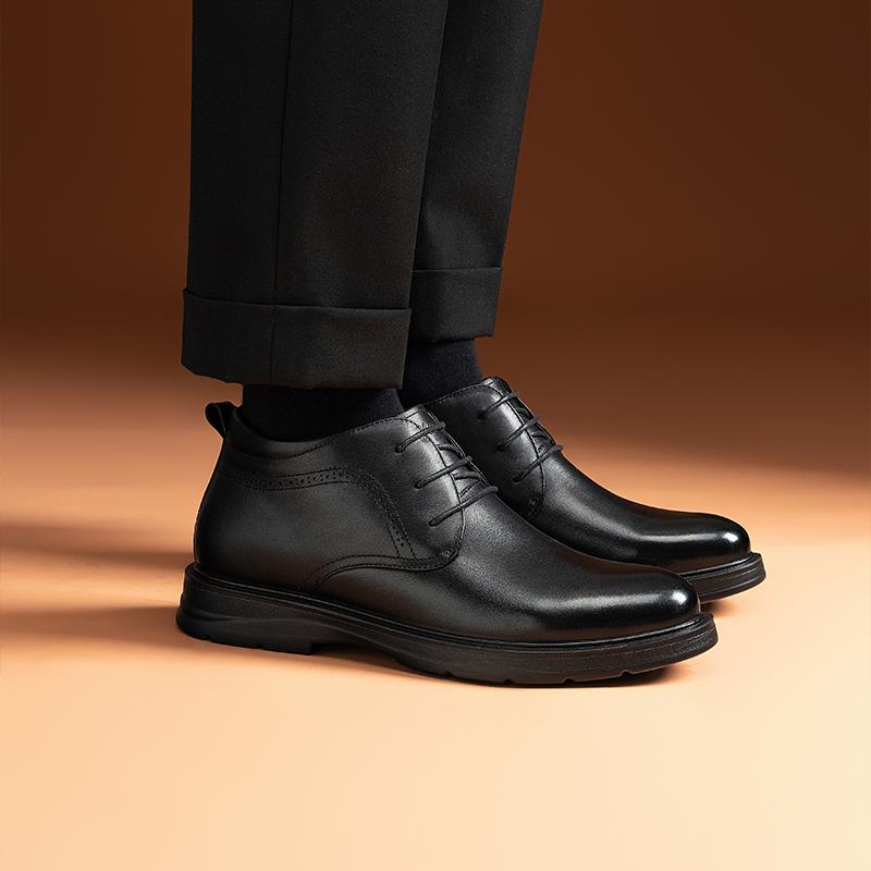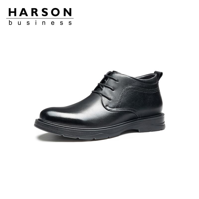 加绒保暖男靴皮毛一体棉鞋 高帮真皮爸爸皮鞋 商务皮靴男士 哈森男鞋