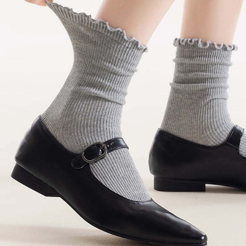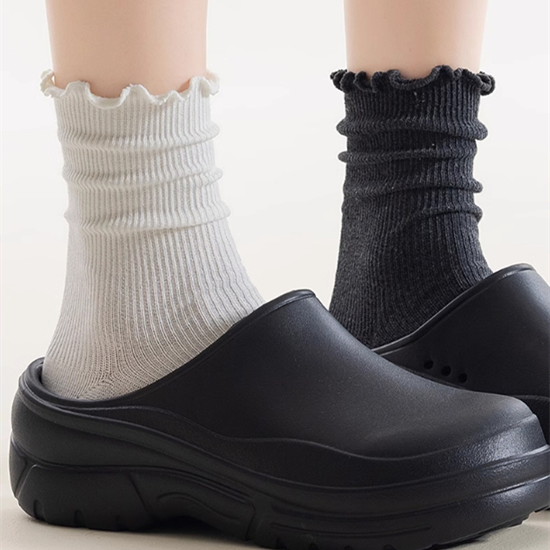 美拉德复古ins甜美风韩式 袜子 潮流外穿木耳花边堆堆中筒女小皮鞋