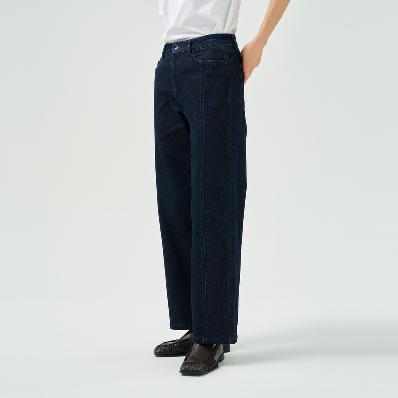 新款 冬季 宽松藏蓝高腰直筒牛仔裤 女美式 OTT 复古长裤 商场同款