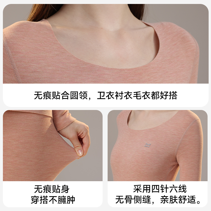 猫人德绒无痕保暖内衣女羊毛发热桑蚕丝养肤秋衣秋裤 加绒女士 套装