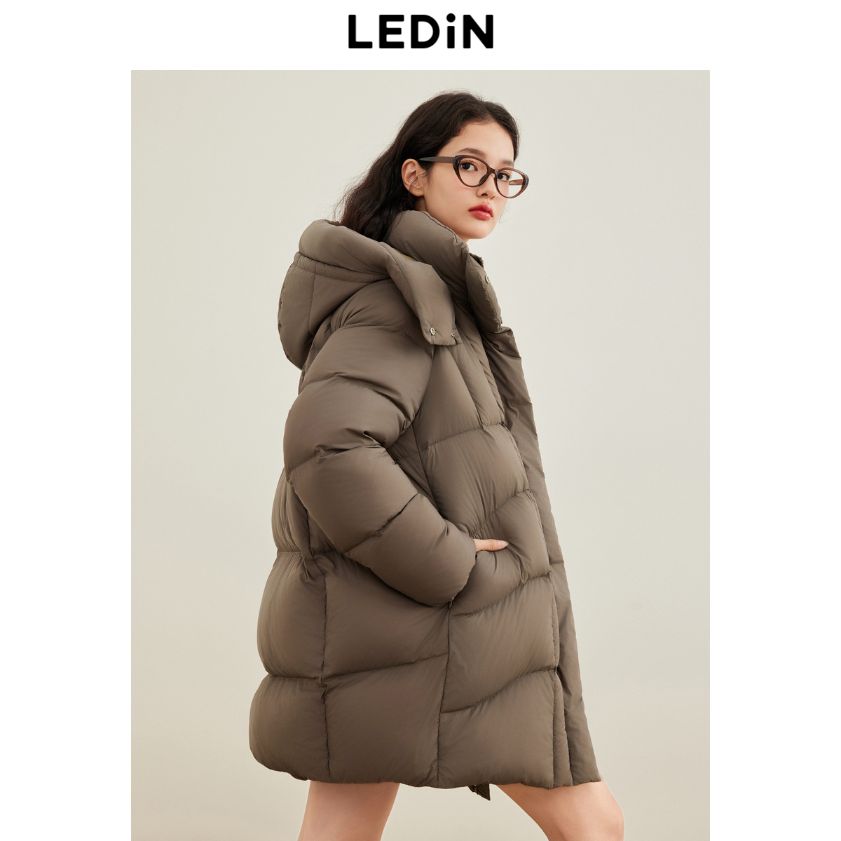 面包羽绒服女冬季 乐町中长款 超柔连帽保暖羽绒外套潮 清仓