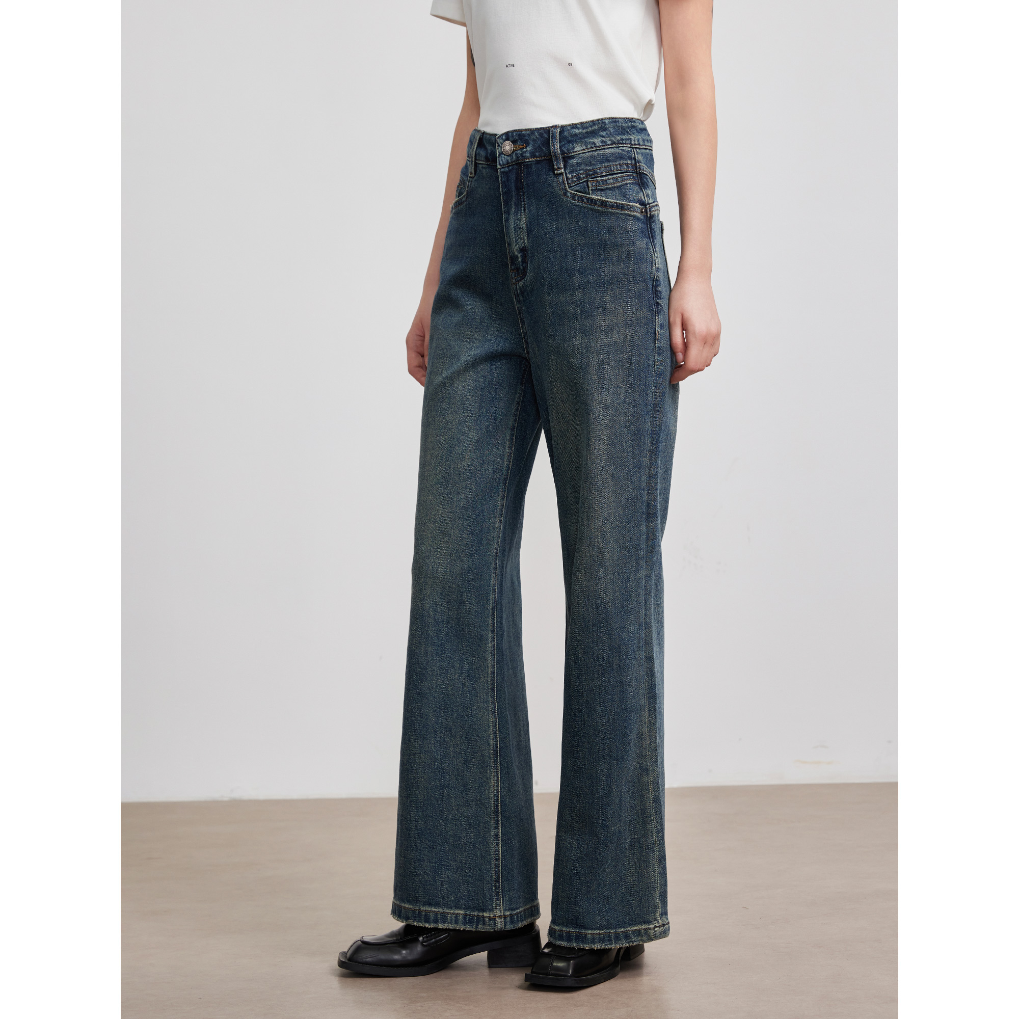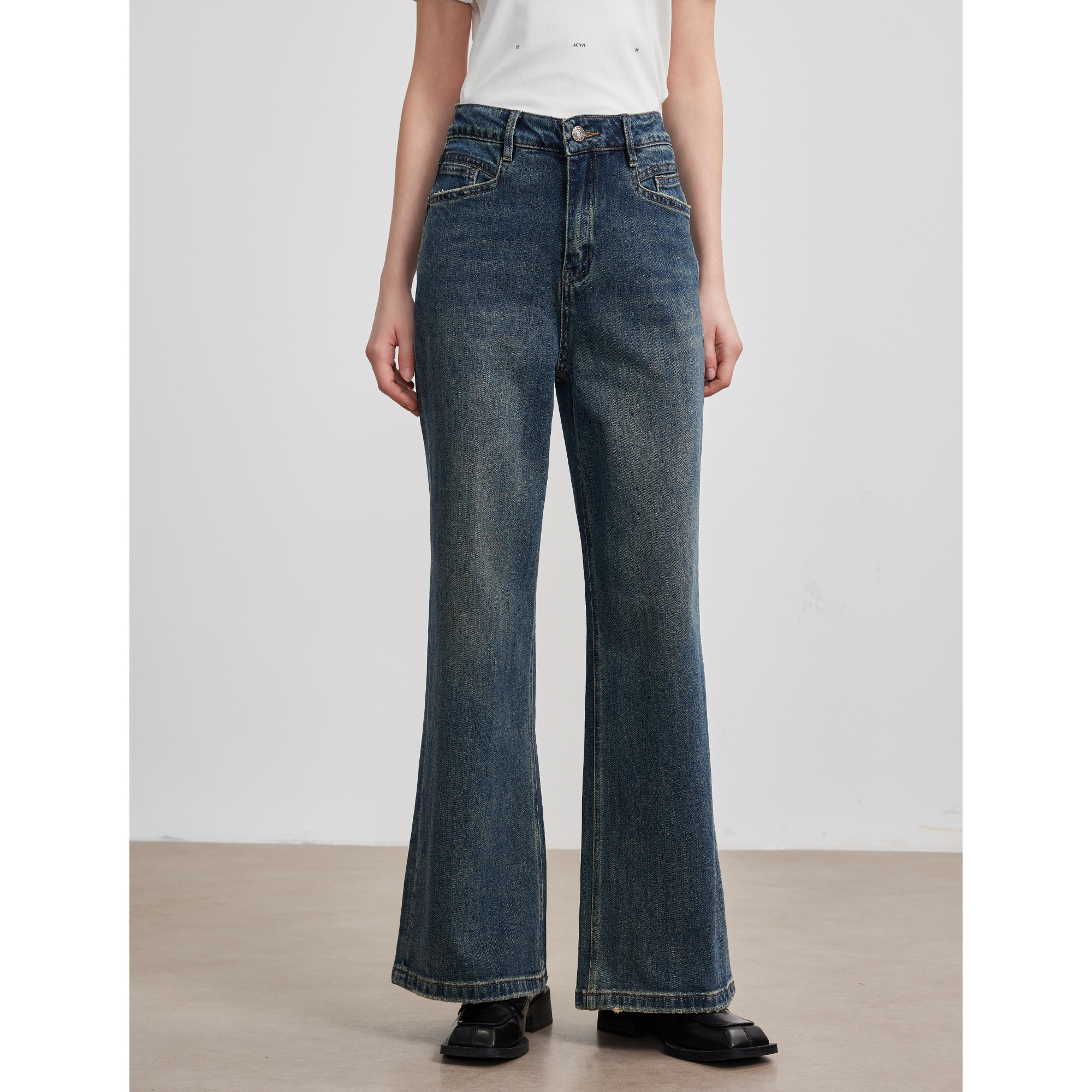 JEANS ABLE 马蹄裤 新款 微喇牛仔裤 女士复古高腰修身 预售