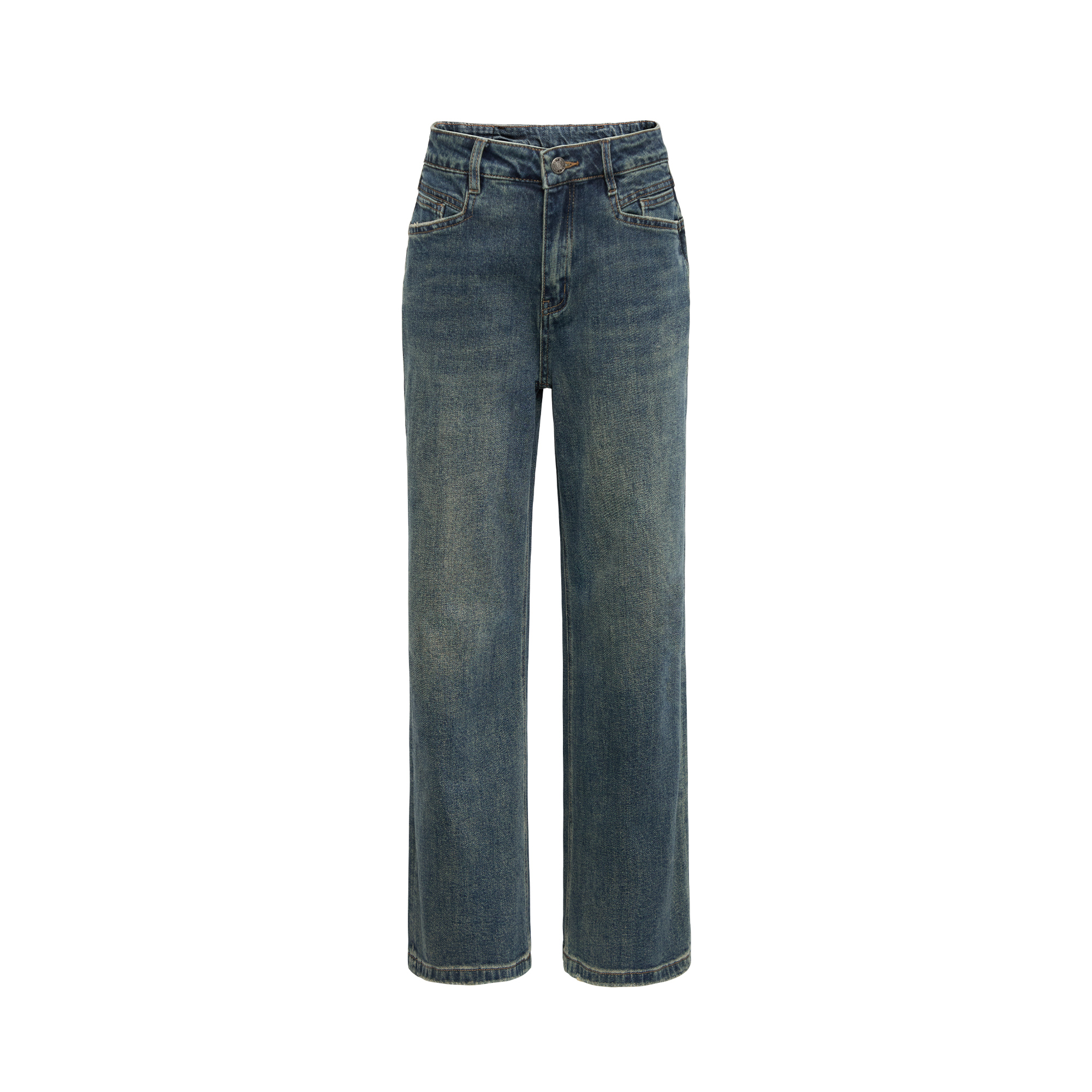 潮流街头春秋显瘦拼接长裤 个性 潮酷 女做旧复古风直筒裤 森马牛仔裤