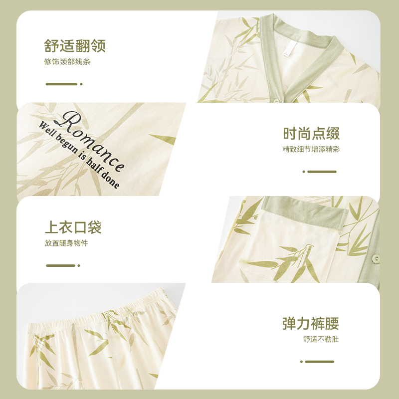 开衫 长裤 高级感可外穿带胸垫家居服 长袖 猫人国风睡衣女纯棉春秋款
