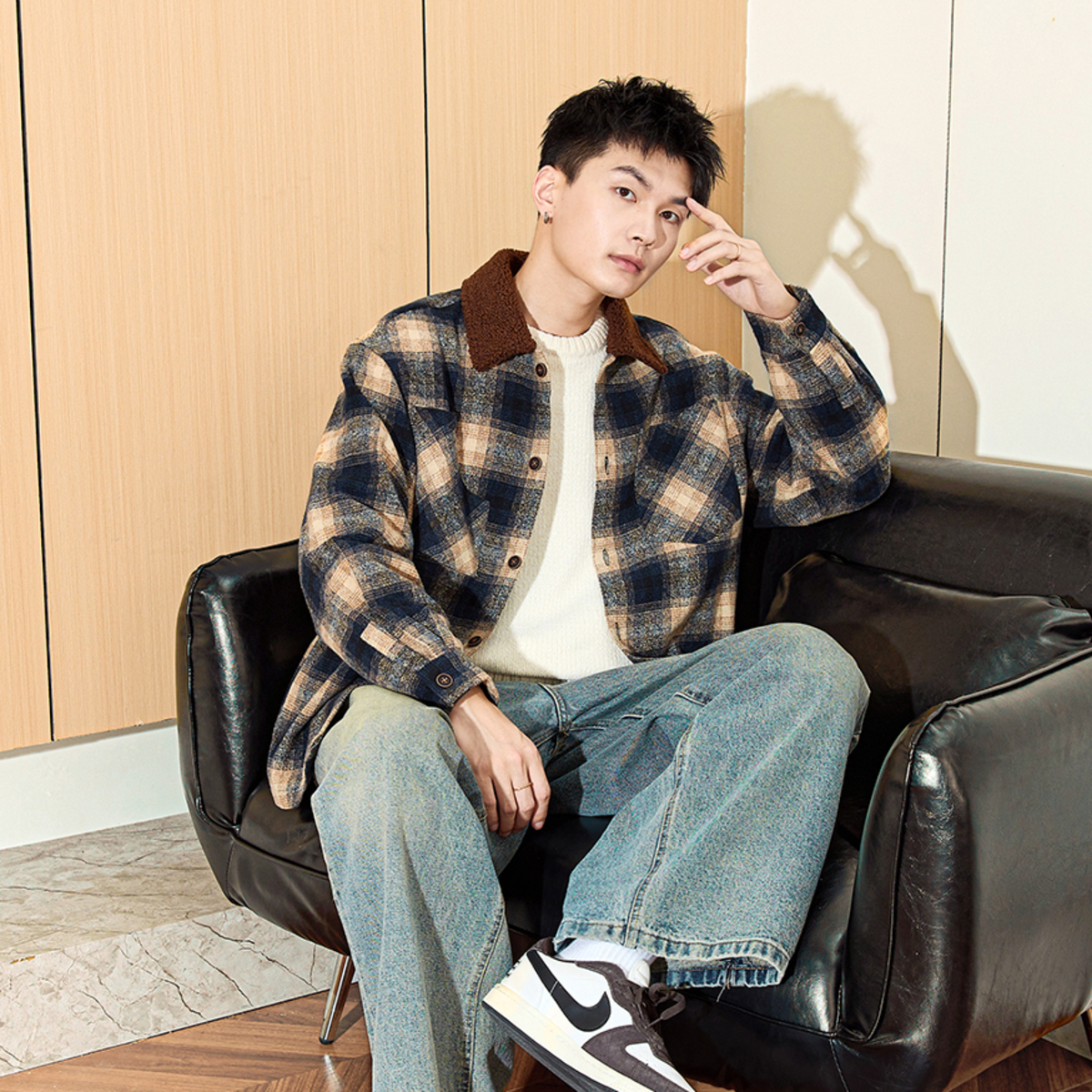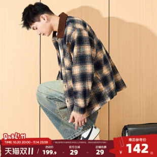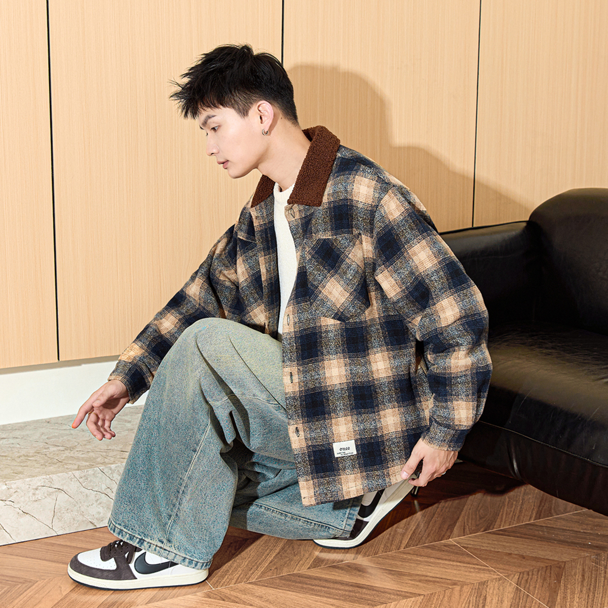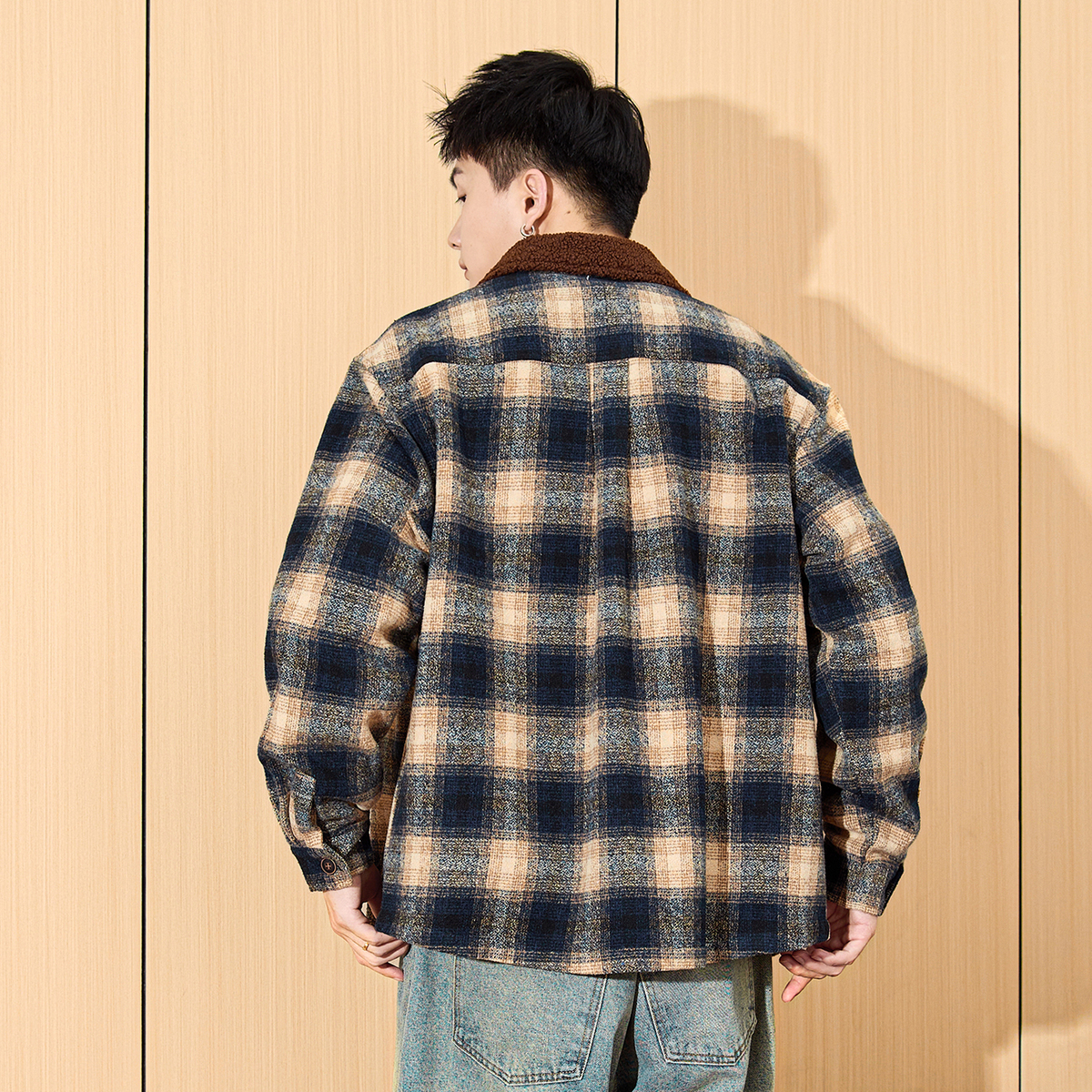 男宽松格子翻领加厚保暖显瘦长袖 休闲衬衫 外套潮 新款 唐狮2025冬季