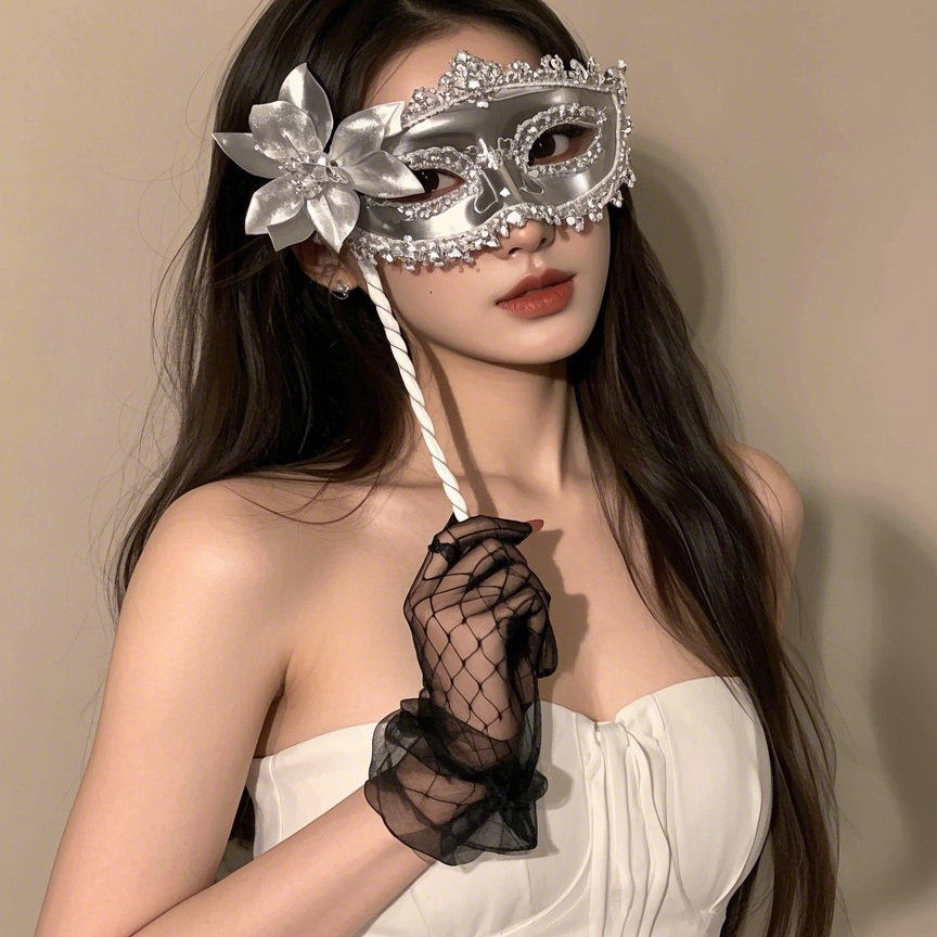 化妆舞会面具鎏金之夜年会晚会假面舞会面罩手持半脸羽毛面具装 扮