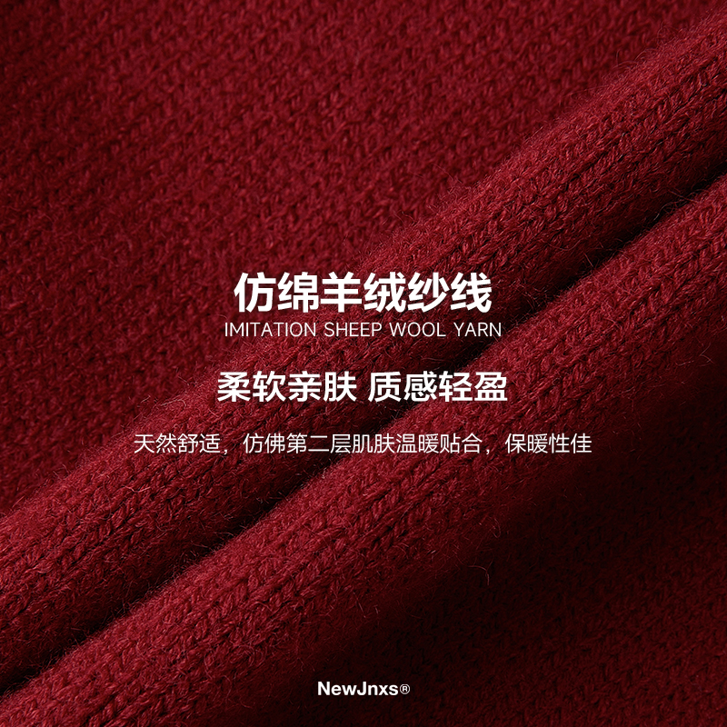 含羊毛秋冬毛衫 红豆毛衣男款 纯色打底加绒保暖针织衫 太阳绒
