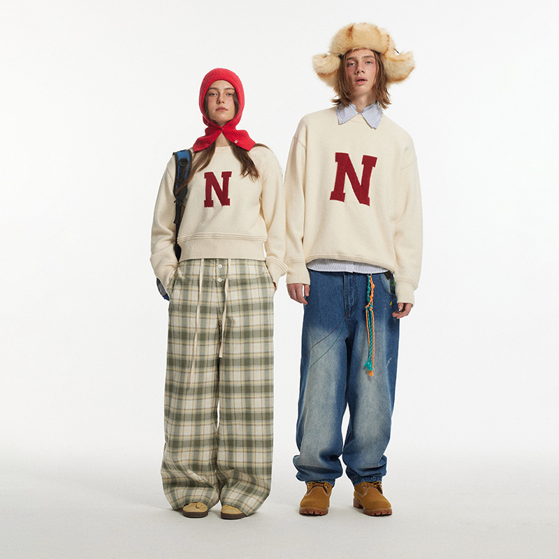 毛衣刺绣含羊毛毛衫 假两件圆领显瘦2025冬新款 女短款 森马针织开衫