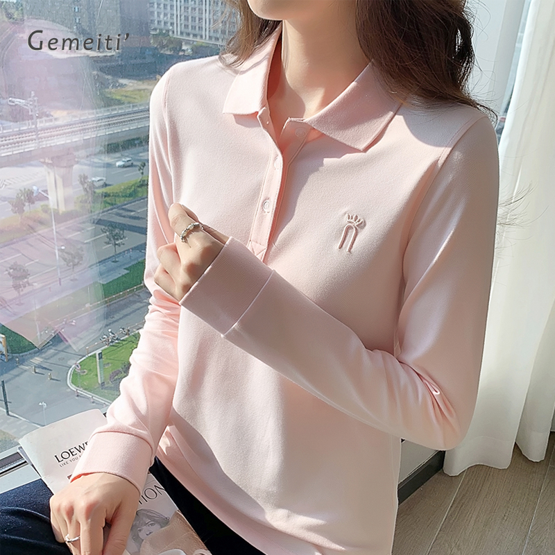 休闲显瘦polo衫 纯棉翻领长袖 新款 春秋季 团体服定制LOGO上衣 t恤女