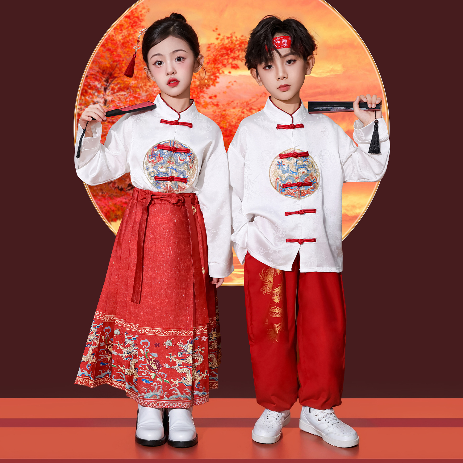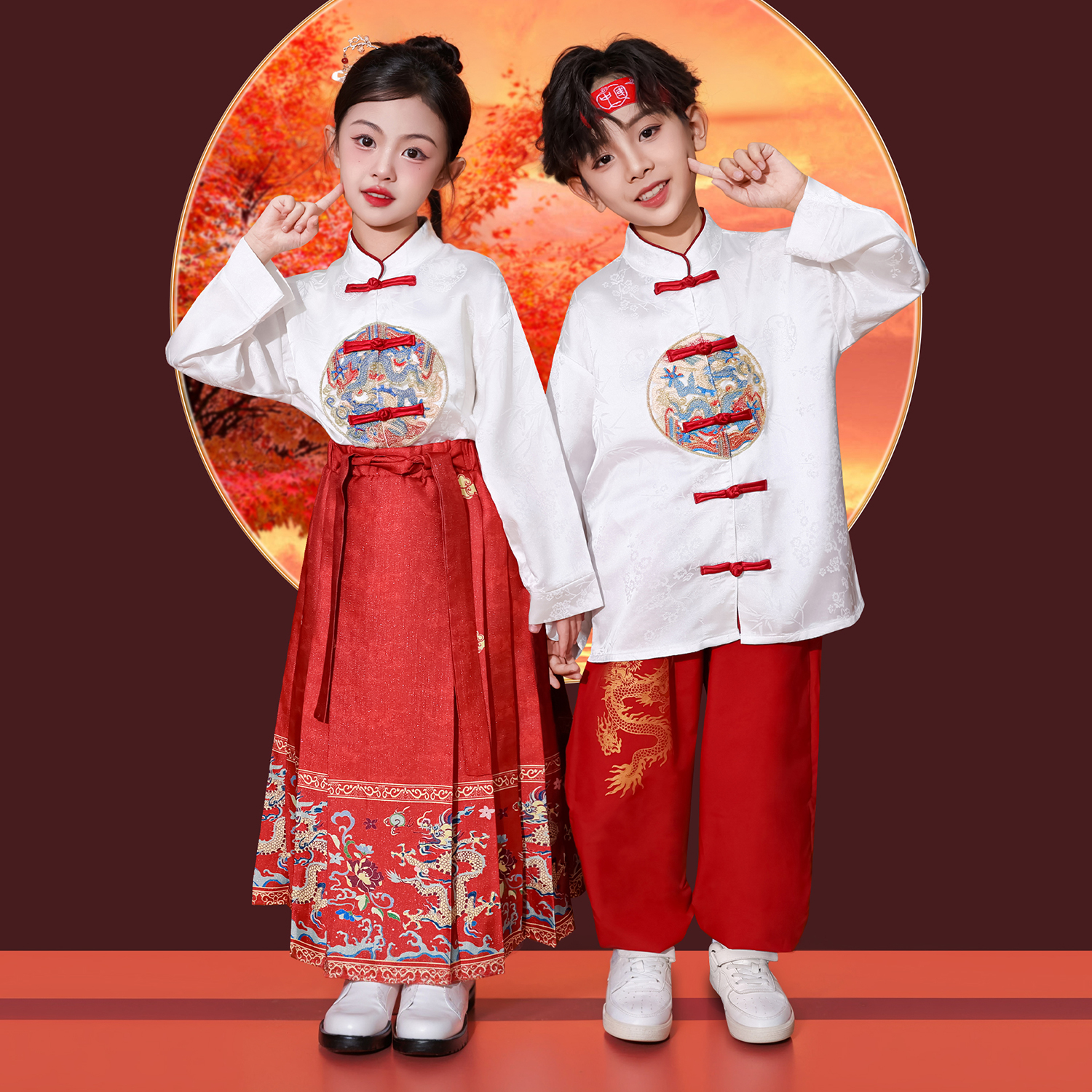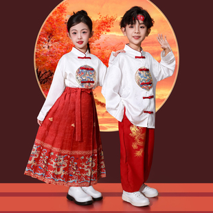 女童马面裙汉服舞蹈套装 儿童演出服男童新中式 国风表演服2025新款