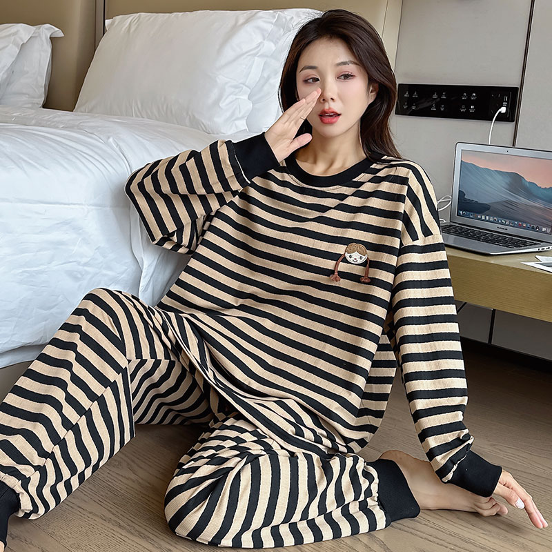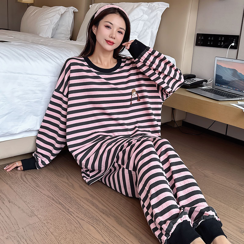纯棉宽松长袖 女胖mm春秋款 家居服两件套200斤可外穿 睡衣大码 秋季
