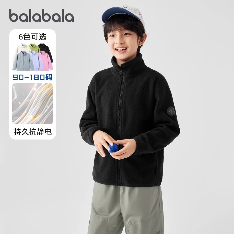 童装 新款 潮 儿童加厚上衣秋季 巴拉巴拉男童摇粒绒外套大童休闲开衫