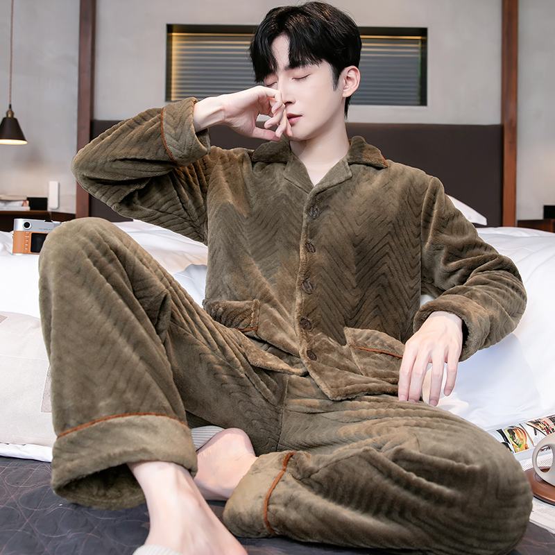 睡衣秋冬款 保暖家居服套装 2025新款 长袖 加厚珊瑚绒法兰绒大码 男士