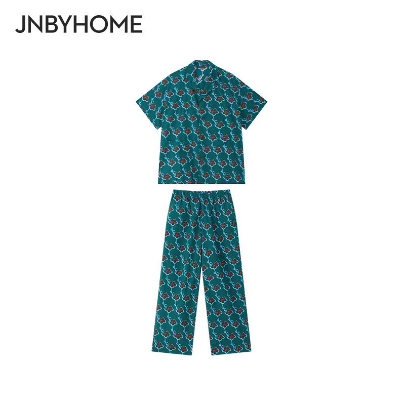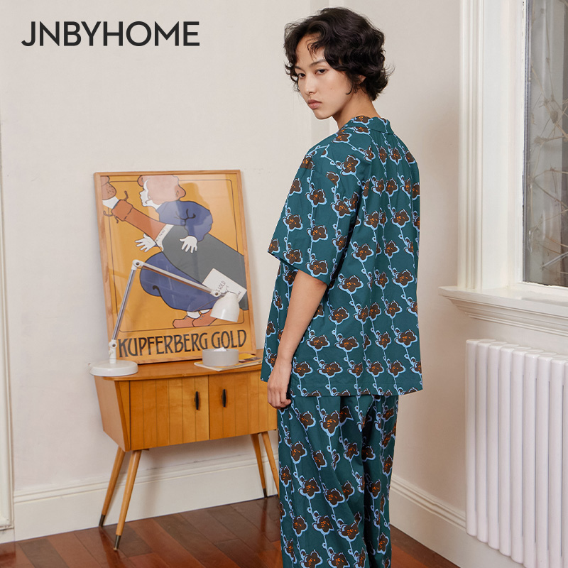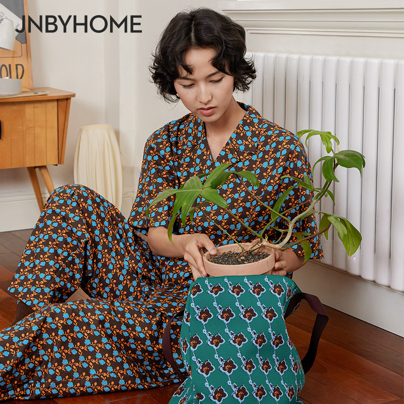 JNBYHOME江南布衣秋新品 睡衣可外穿 全棉府绸家居服几何印花长袖