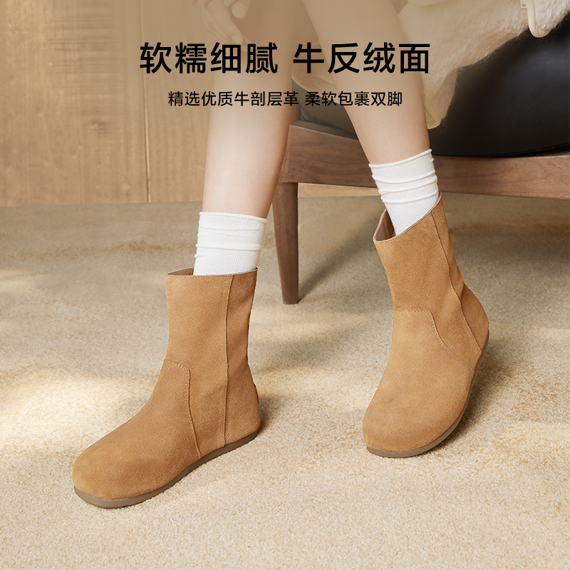 星期六2025秋冬新款 百搭通勤弹力女袜靴 粗跟短靴女外穿不累脚时尚