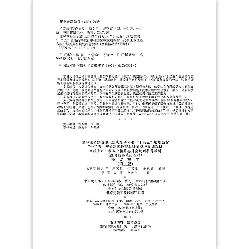 教材 住房城乡建设部士建类学科专业十三五规划教材 卢文良 桥梁施工 文玉 高校土木工程专业指导委员会规划推荐 季 许克宾 第二版
