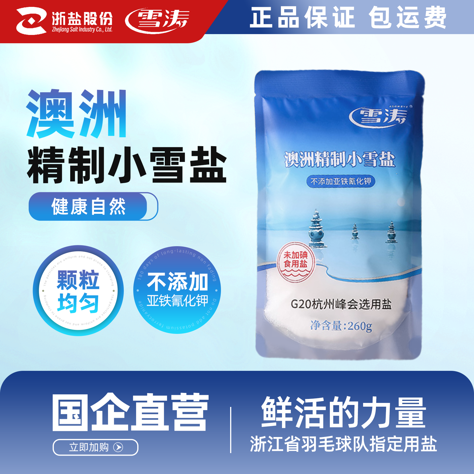 雪涛澳洲精制小雪盐无碘食用海盐未加碘不含抗结剂甲状腺260g 8袋