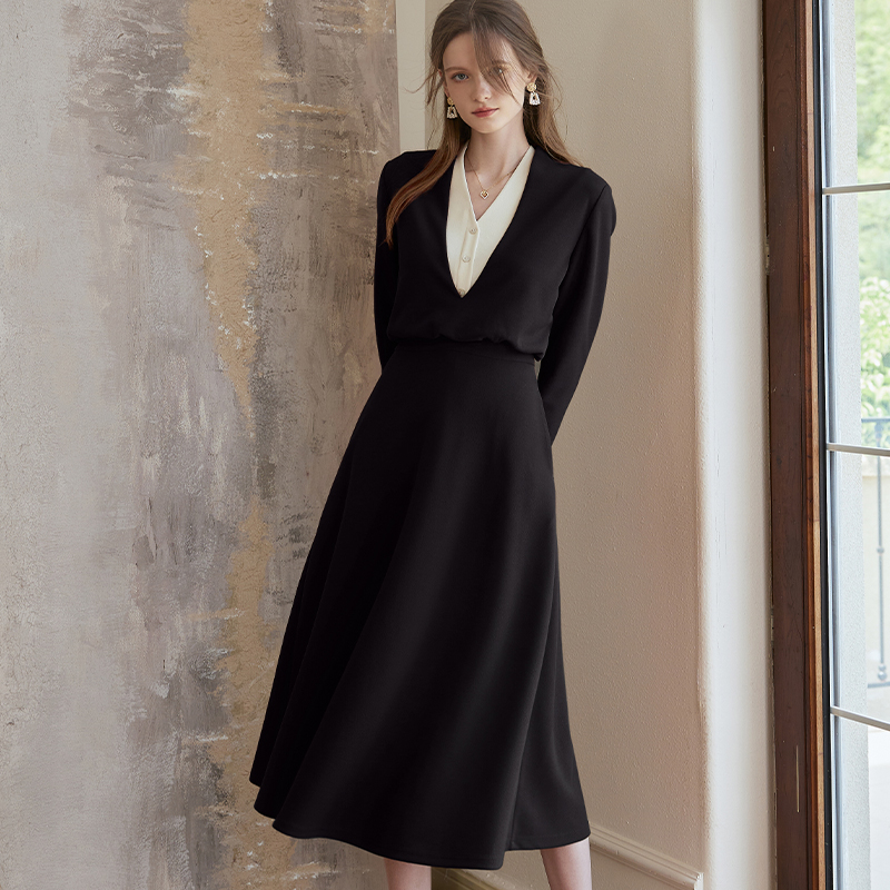 DPLAY2025秋季 气质黑色连衣裙毛衣裙针织连衣裙设计感显瘦长裙女