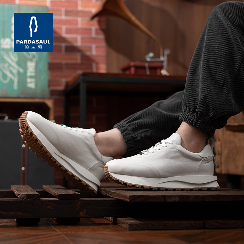 小白鞋 真皮运动休闲皮鞋 男防滑圆头 2024男士 100%全牛皮啄木鸟男鞋