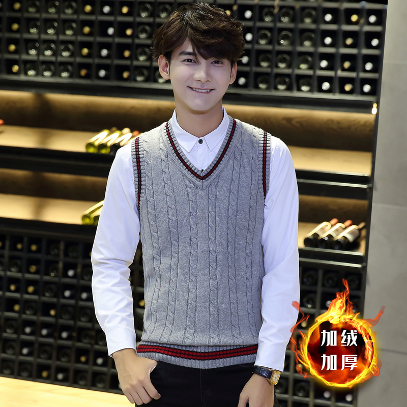 背心外穿无袖 加棉加厚保暖针织衫 坎肩V领毛衣 加绒马甲男装 秋冬季