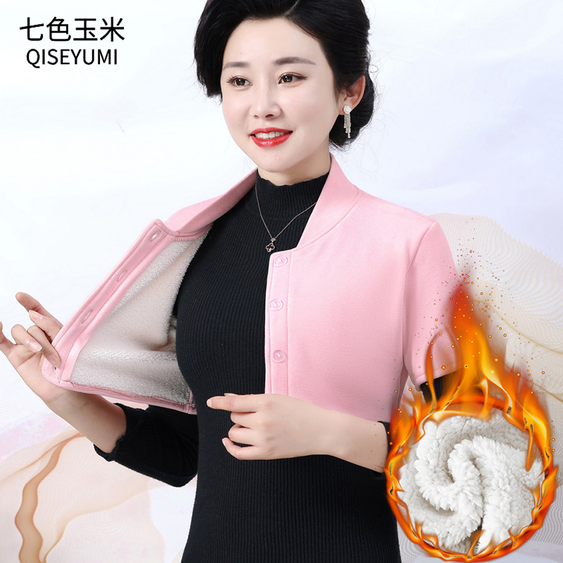 马夹 保暖中老年女装 秋冬妈妈立领羊羔绒护肩周中袖 加绒护肩膀男士