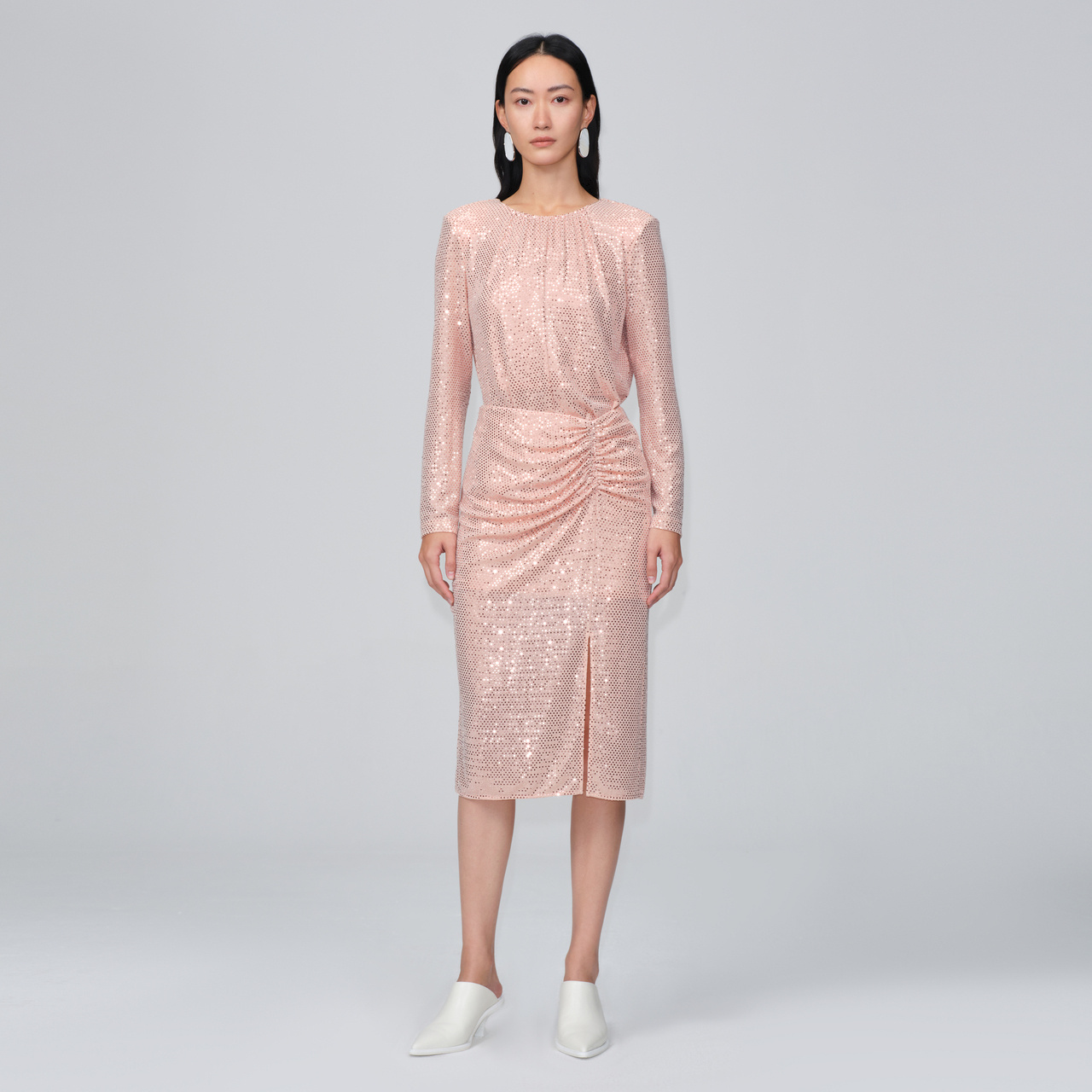 IMM尹默女装 上衣女春 人鱼亮片珊瑚粉正反两穿礼服气质衬衫