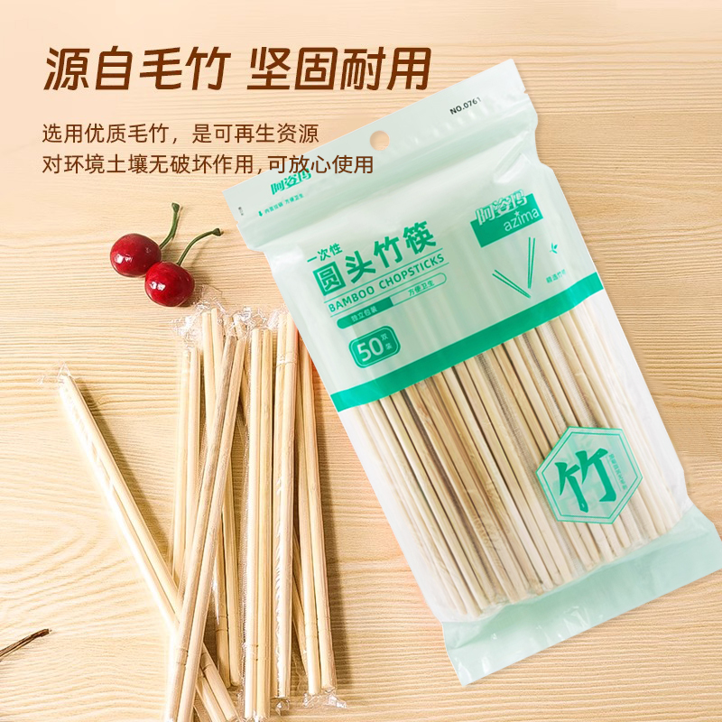 阿姿玛碳化天然毛竹独立包装 一次性筷子免洗圆头筷子打包碗勺