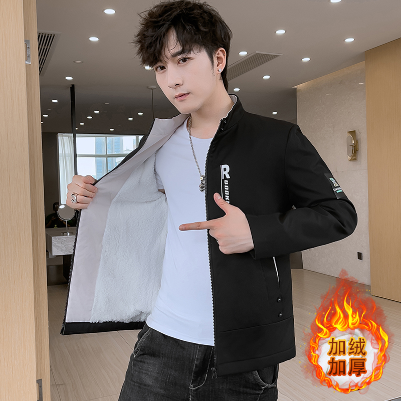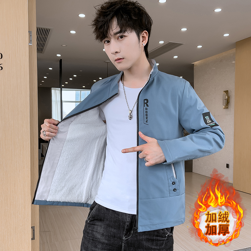 加绒加厚夹克男装 休闲百搭外衣青少年潮流秋装 立领外套秋冬款 男士