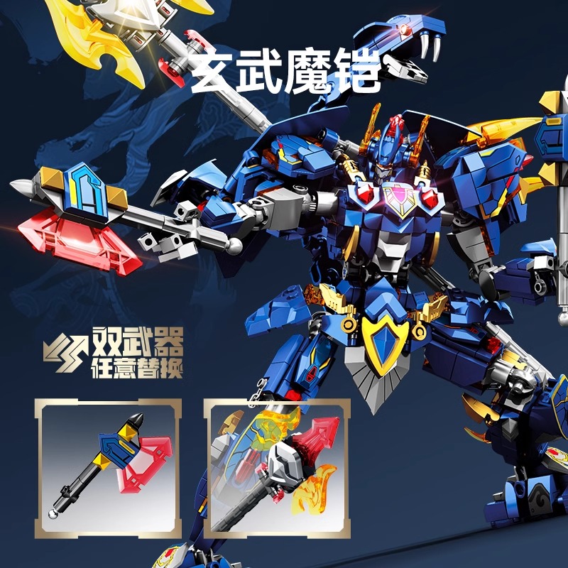 2025新款 合体四神兽儿童男孩玩具礼物 变形机器人机甲积木益智拼装