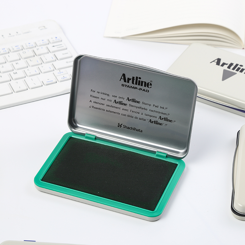日本旗牌Artline大号方形红色印台黑色蓝紫绿色水性印泥印油橡胶章通用办公财务银行会计空白印台金属盖