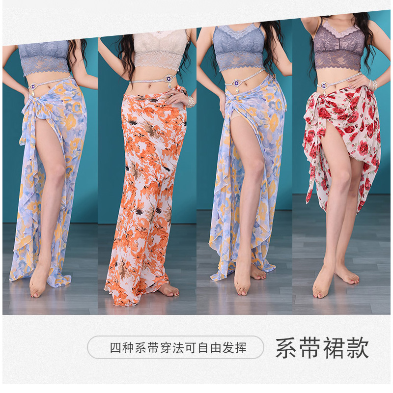 肚皮舞臀巾服装 2024春夏表演印花裙东方舞蹈演出服性感系带半身裙