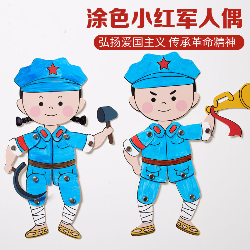 国庆节手工diy爱国红色主题涂色小红军人偶幼儿园儿童制作材料包