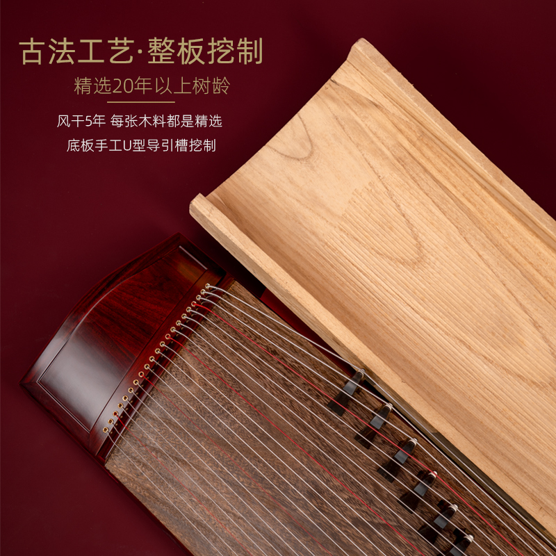 秦音祥鹿古筝126实木挖筝小古筝 专业考级演奏琴 血檀便携小筝
