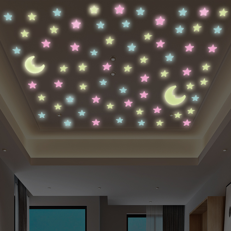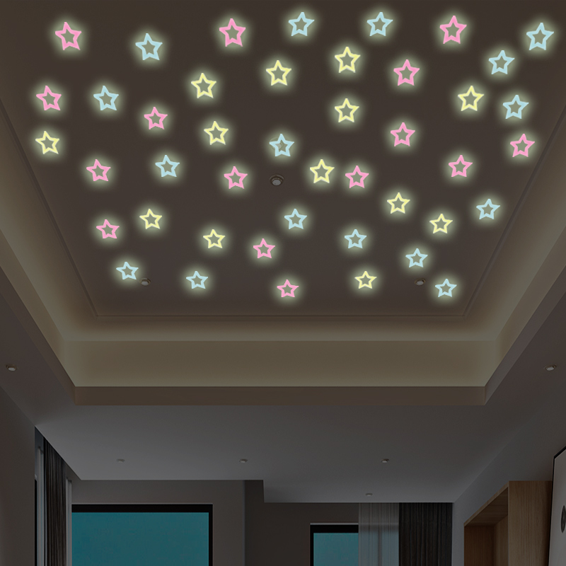 儿童房屋顶天花板装 饰夜光星星贴荧光墙贴墙壁贴画3D立体墙纸自粘