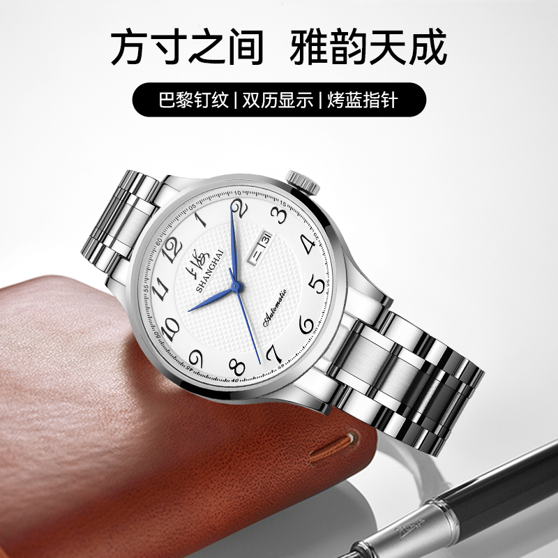 上海手表男自动机械表简约官方正品 防水国产男女士情侣腕表629B
