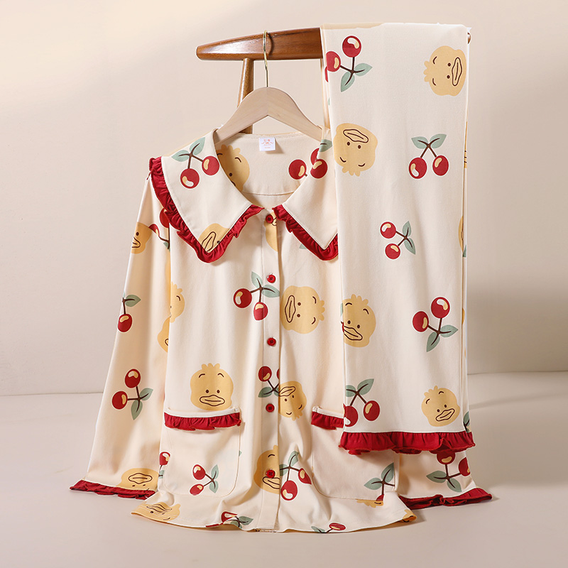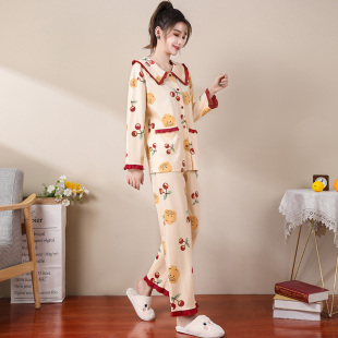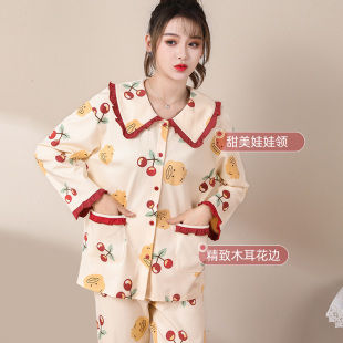 开衫 纯棉睡衣女娃娃领春秋甜美宽松大码 秋冬款 套装 家居服 针织长袖