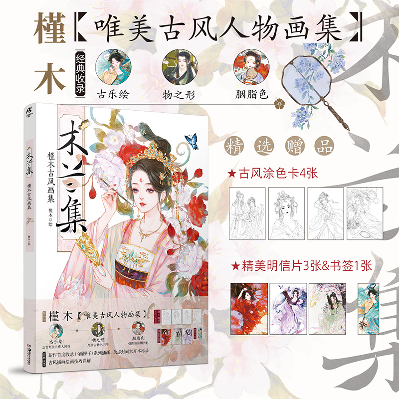 明信片 书签 朝阳借出胭脂色 随书赠古风涂色卡 古风绘画技巧详解 摩挲古物忆当年 木兰集古乐绘 槿木个人古风人物主题画集